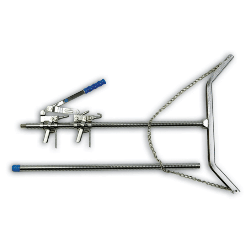 The AgriPro Champion Calf Puller features deeper, nickel-plated grooves on the pole that allow for easier pulling, with reinforced breech, and extra long pipe sections for large breed cows. It has a blue molded plastic handle for comfortable cranking and two longer ratchet release levers that form to the fingers. The ratchet moves smoothly up and down the pole, while the deeply cut threads in the pipe sections prevent the ratchet from slipping. The three hooks are designed to attach OB straps or chains. Length is approximately 64″.