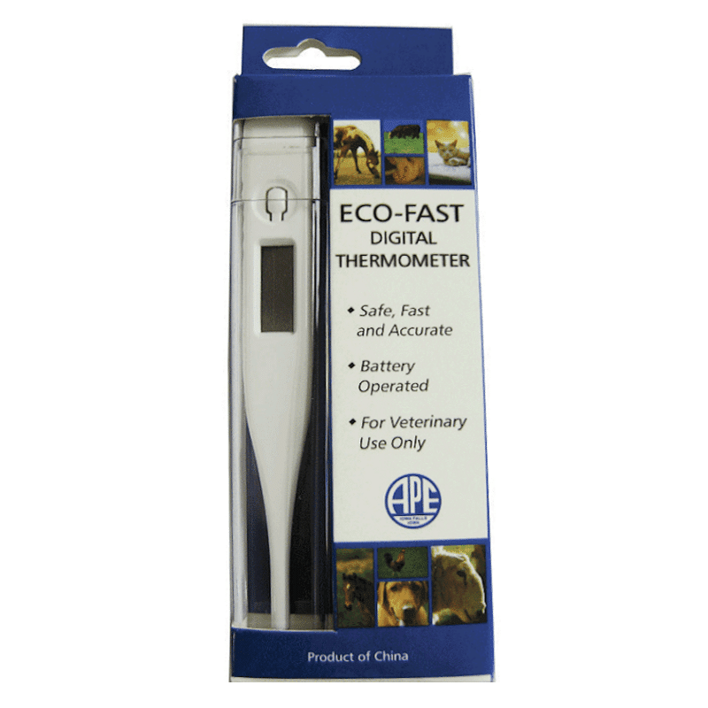 Safe, fast, and accurate, the AgriPro Eco-Fast Digital Thermometer is battery operated with more than 200 hours of continuous operation with the enclosed 55V button size battery. It features an approximate 30- to 60-second read time and an easy to read crystal display of 3.5 digits. The temperature reading range is 90 to 108 ºF.