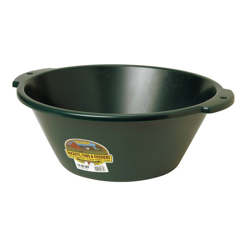 This tough, practical tub works great as a feeding pan or washing pan, but you’ll put it to use in many more ways around your farm, ranch, home, or shop. Made of impact-resistant DuraFlex plastic. Rim has hand grips for carrying.