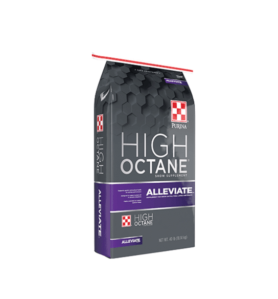 High Octane® ALLEVIATE® Supplement for show cattle, pigs, lambs and goats is formulated to support optimal pH in the digestive system of animals. It is estimated that over 80% of show pigs experience gastric health issues affecting overall performance. Acidosis (the result of low rumen pH) causes ruminants to be off feed with digestive stress. Gastric heath and ruminal acidosis are exacerbated in the show industry due to feeding systems, management systems and the inevitable stressors of the show ring world.