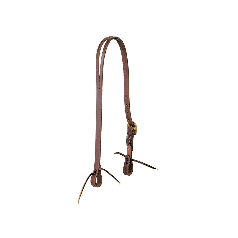 This curb strap is constructed from 5/8″ wide brown latigo leather with a nickel plated buckle.